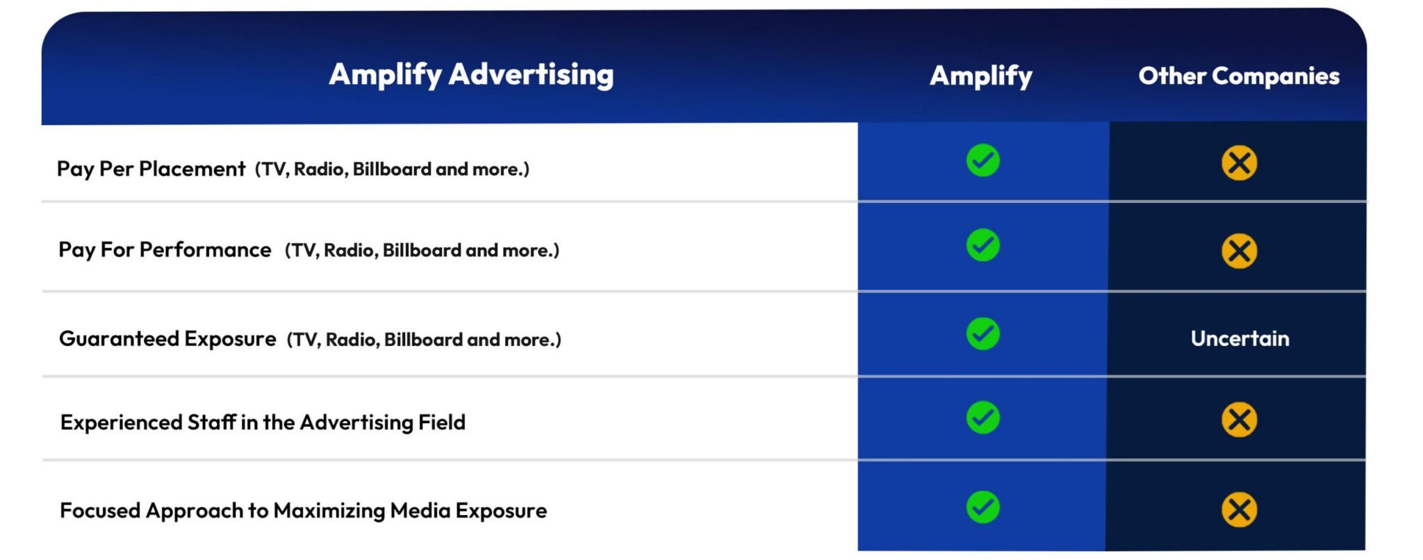 The Amplify Advertising Agency delivers exceptional services that set us apart from ordinary advertising firms.